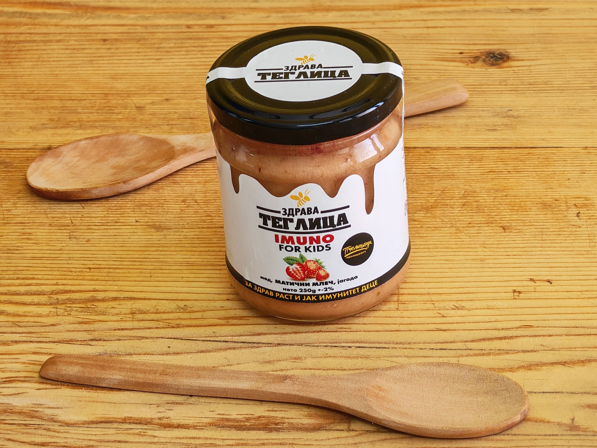 U srcu ovog proizvoda je prirodni trojac: med, matični mleč i jagoda – spoj koji ne samo da čuva zdravlje, već ga vaši mališani rado uzimaju svakog dana.